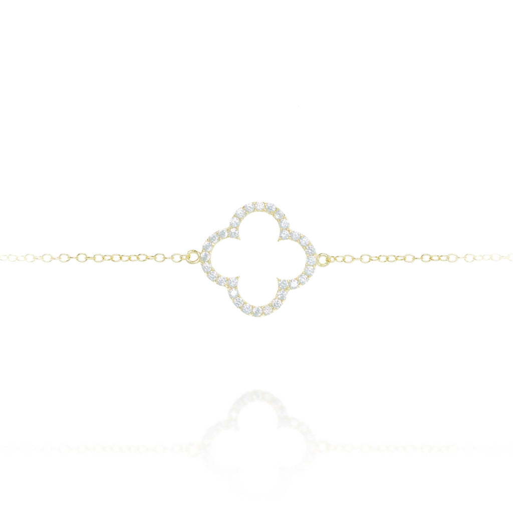 Elegant gold plated on silver chain bracelet with a sparkling clover pave charm.