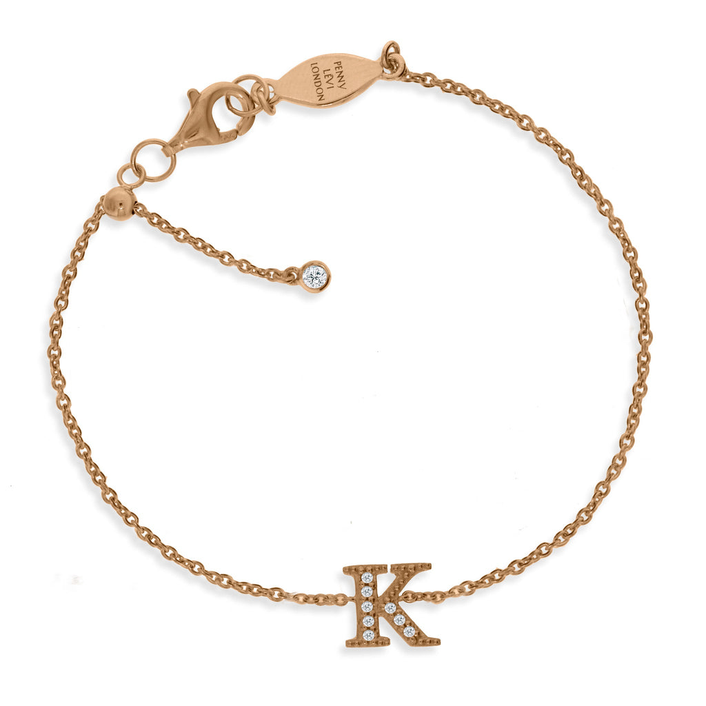 Elevate your style with our Rose Gold Plated Silver Chain Initial Bracelet, featuring sparkling CZ stones and an initial 'K'. The sliding size adapter ensures a perfect fit, while micron plating maintains its lustrous finish for enduring elegance.
