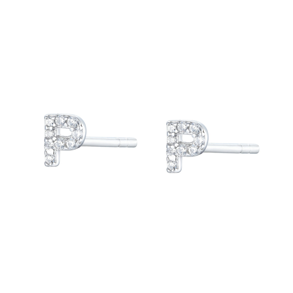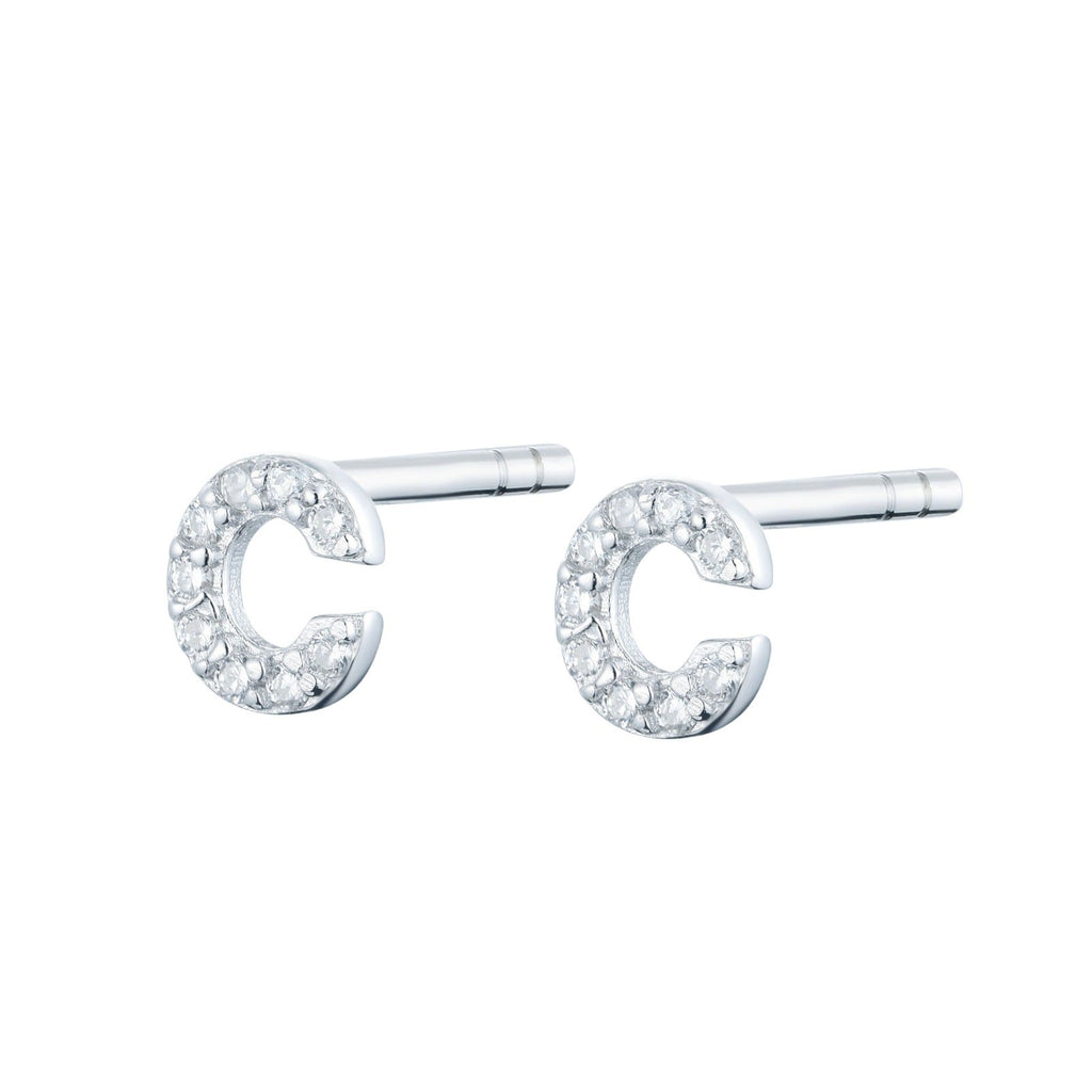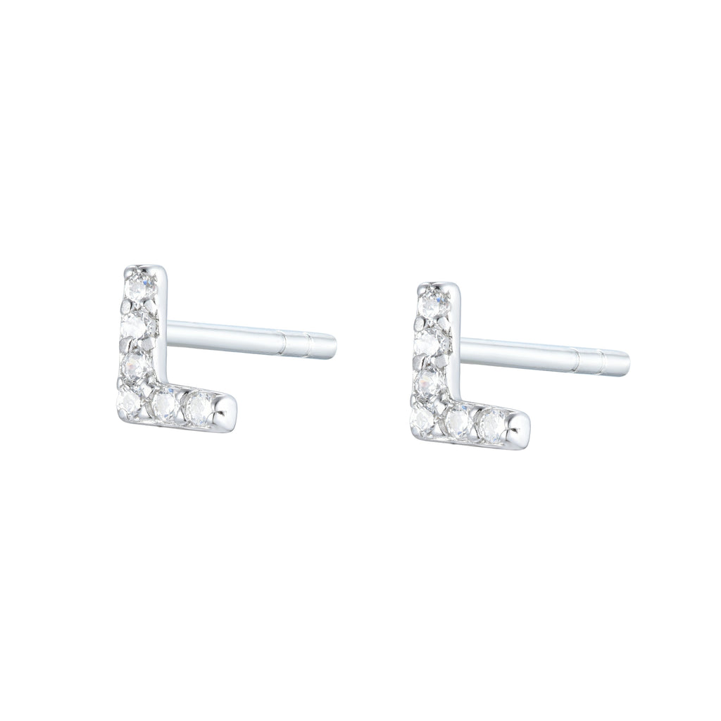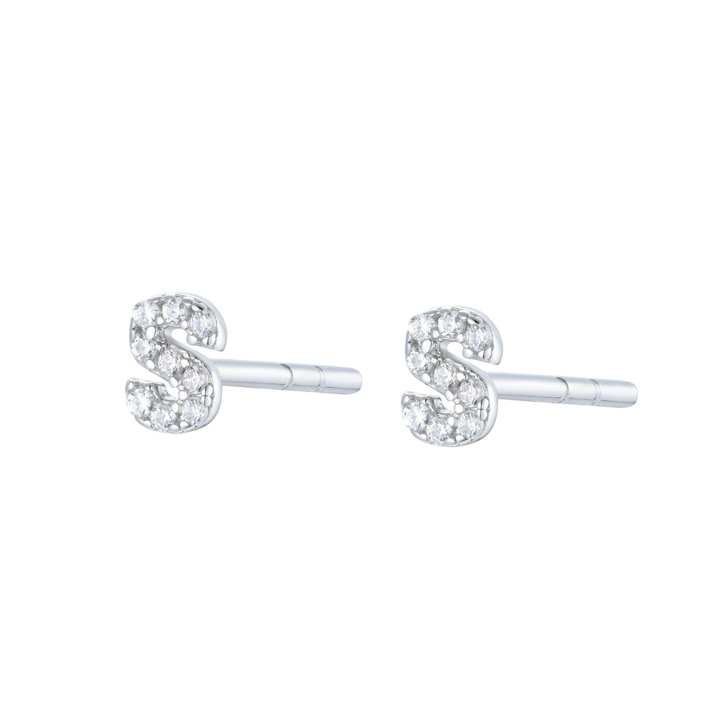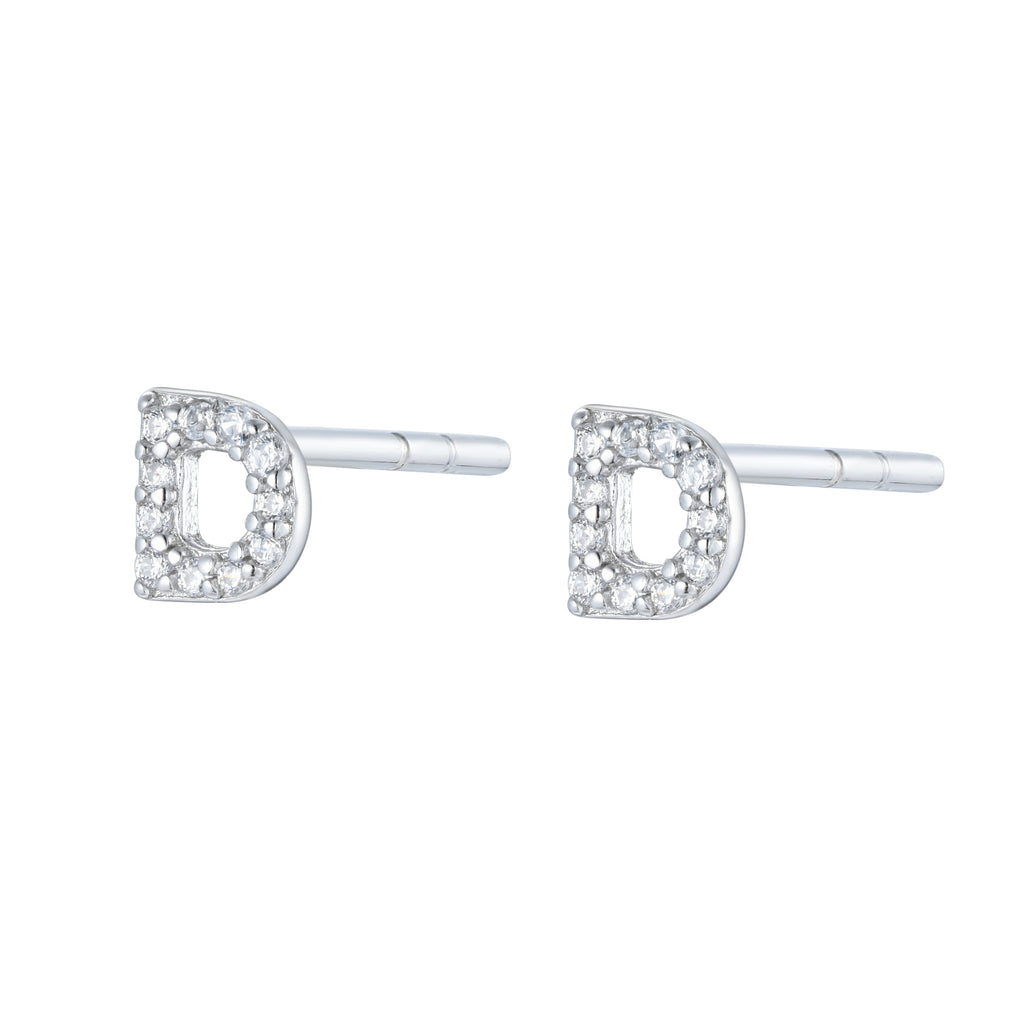 EG-26/Silver - Initial Stud Earrings (Sold as a single stud)