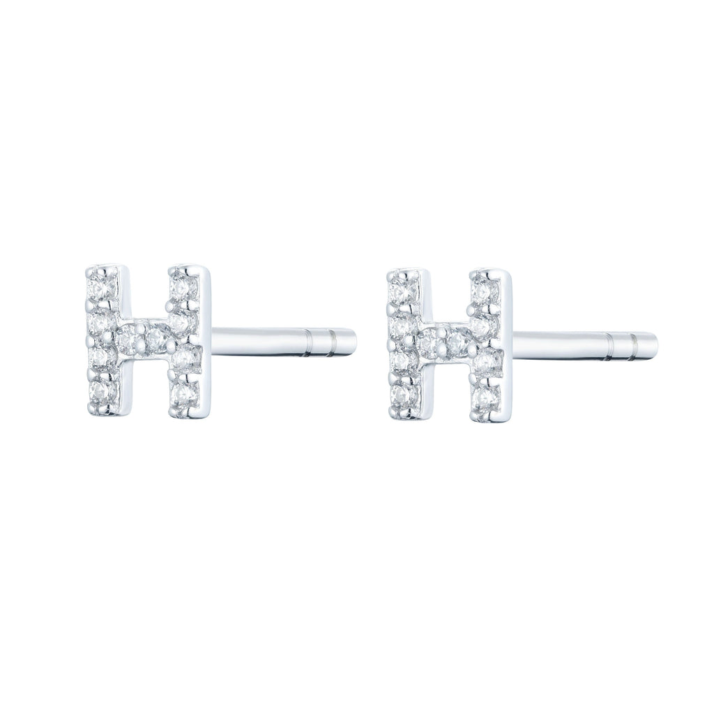 Elevate your style with our Initial Stud Earrings, featuring an 'H' encrusted with cubic zirconia stones and a sleek silver-tone finish. Perfect for everyday wear or special occasions, these earrings offer personalised elegance and sophistication.