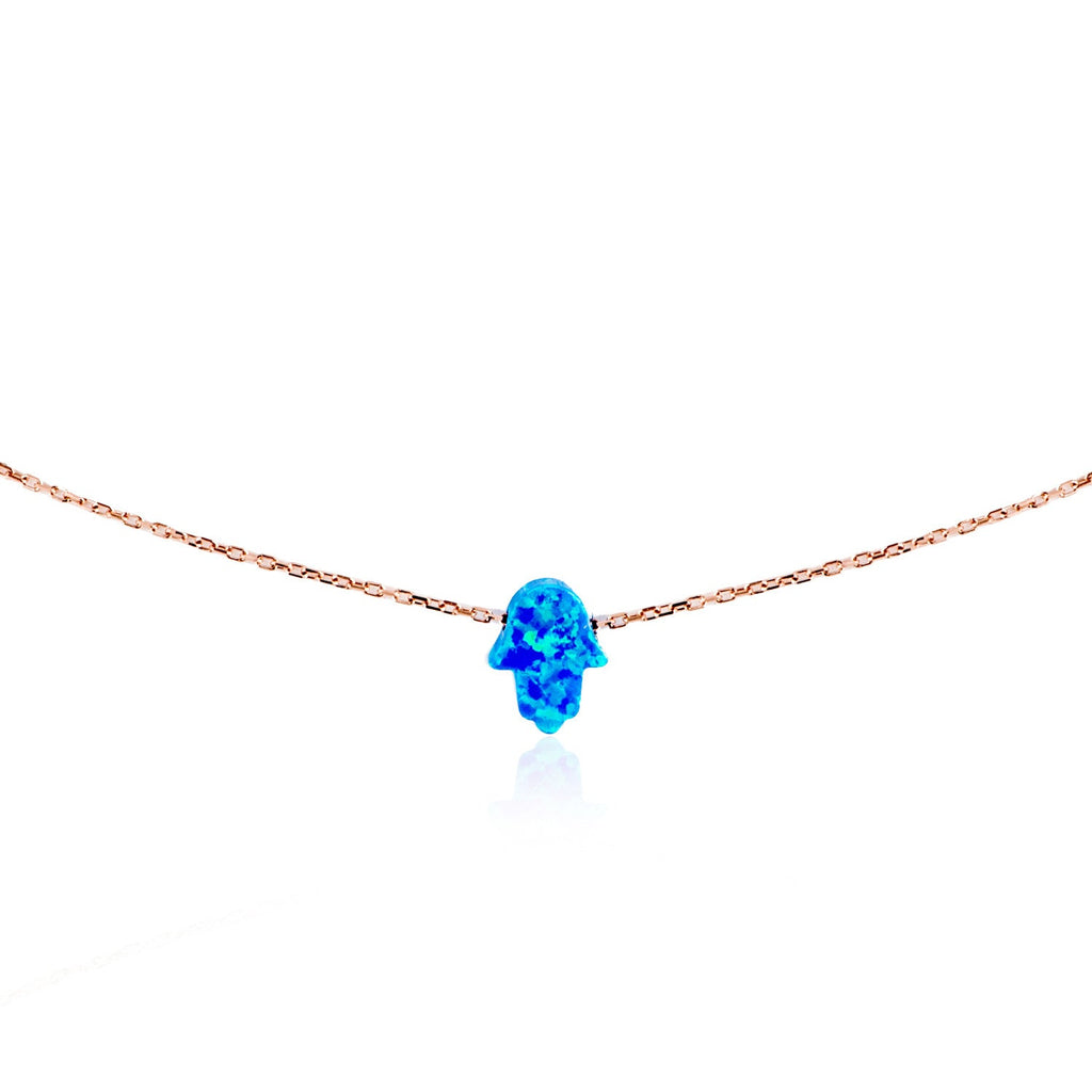 Experience elegance and mysticism with our Rose Gold Plated Silver Chain Necklace, featuring a blue Opal Hamsa pendant. Adjustable for comfort, this 42 cm chain with a 4 cm extension adds sophistication and symbolism to any outfit.