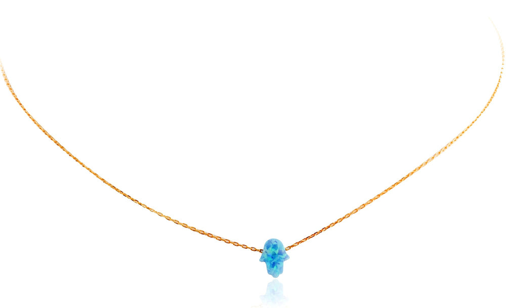 Elevate your elegance with our Gold-Plated Silver Chain Necklace, featuring a Blue Opal Hamsa charm. This durable, luxurious piece adds spirituality and sophistication to any outfit, with an adjustable length of 42 cm plus a 4 cm extension.