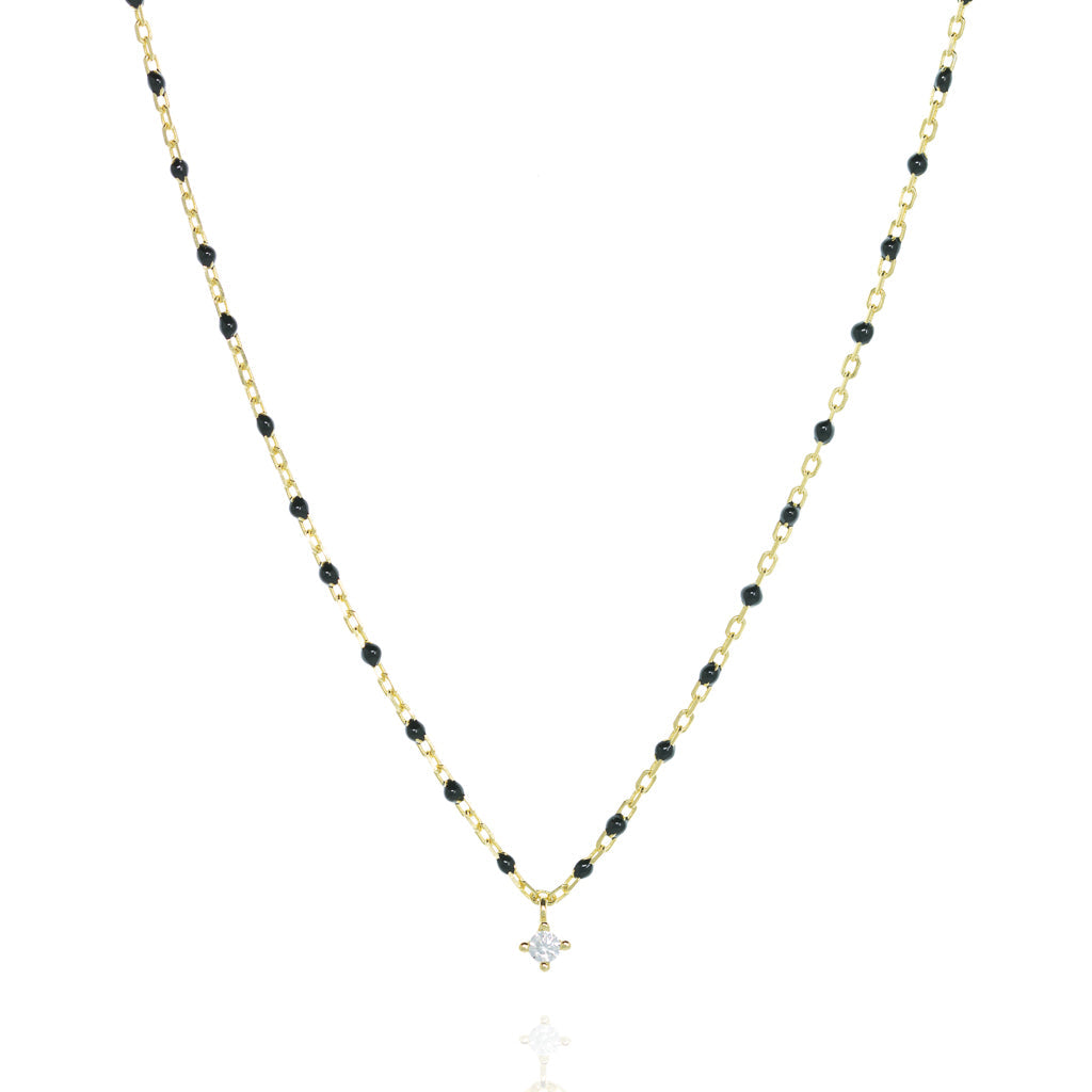 Adorn your neckline with this Gold Plated Silver Chain and Bead Necklace, featuring a delicate chain, striking black beads, and a dazzling cubic zirconia. Measuring 45cm with extensions, it enhances both casual and formal attire, symbolising refined taste.