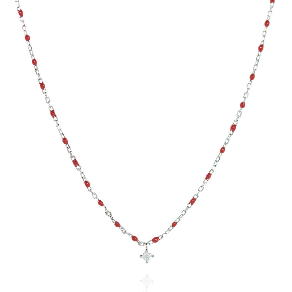 Elevate your elegance with our Sterling Silver Short Chain and Bead Necklace, featuring vibrant red beads and a sparkling Cubic Zirconia. Adjustable to 45 cm, it’s perfect for any occasion, adding charm and sophistication to any outfit.