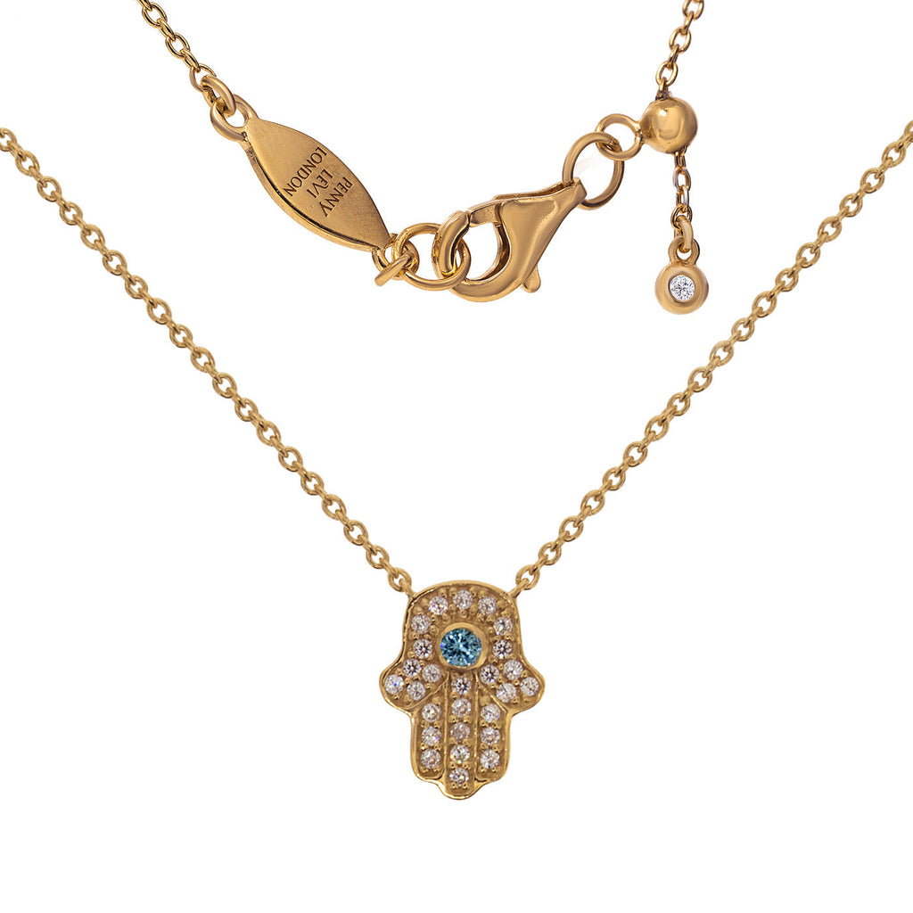 - Pendant: Hamsa symbol with cubic zirconia