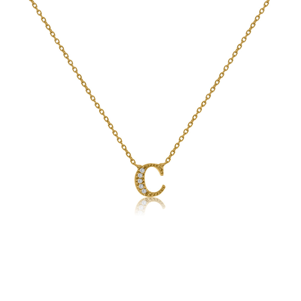 Elevate your style with this Gold Plated on Silver Initial Necklace, featuring a 'C' pendant adorned with Cubic Zirconia. Its durable micron plating and sliding length adjuster ensure long-lasting wear and versatile styling. Perfect as a gift or personal treat.