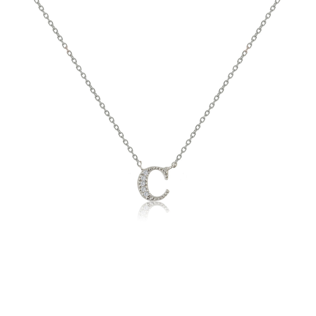 Indulge in the timeless elegance of our sterling silver initial necklace, featuring a beautifully designed "C" with dazzling CZ stones. Micron plated for durability, it includes a sliding length adjuster for a customised fit, perfect for any occasion.