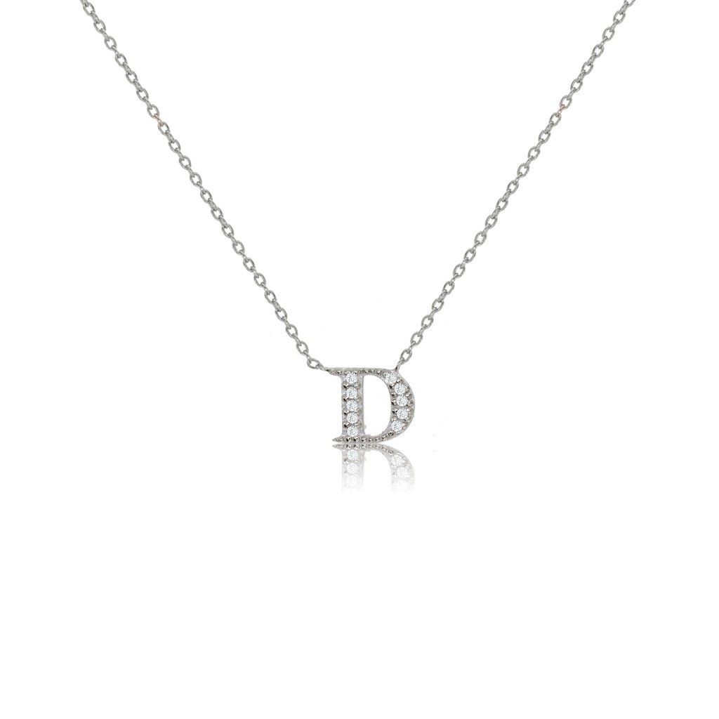 Sterling silver initial necklace with sparkling cubic zirconia stones and adjustable chain.