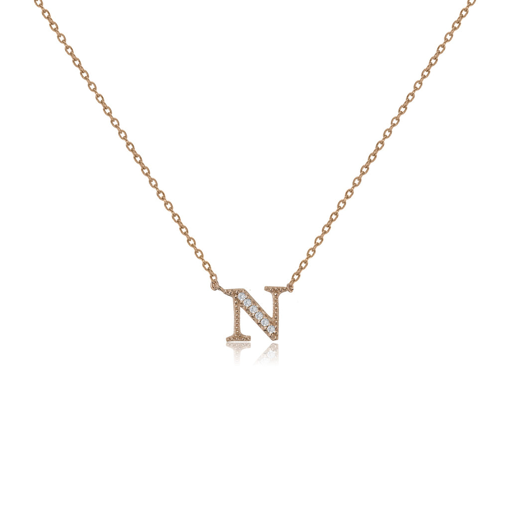 Sophisticated and stylish, the Rose Gold Plated on Silver Initial Necklace with CZ Decoration combines elegance and modern charm. Featuring an adjustable length and shimmering cubic zirconia, it adds glamour and personal significance to any outfit.